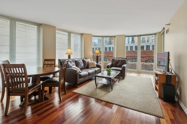 Welcome to Unit 1006 at the Sterling. An Exceptional 2 Bed, 2 Bath Condo in the Heart of River North, Offering an Ideal Blend Of Space, Light, and Full-Service Amenities. This Thoughtfully Designed Residence Features Engineered Hardwood Floors Throughout, Floor-To-Ceiling Windows that Flood the Home with Natural Light, and the Convenience of an In-Unit Washer/Dryer. The Spacious Kitchen Offers Ample Cabinet Storage, Generous Counter Space, and a Breakfast Bar Perfect for Everyday Living or Entertaining. Step Outside to a Large Private Balcony-Rare for the Area-Easily Accommodating a Grill and Outdoor Furniture. The Primary Suite is Generously Sized and Well-Appointed with a Walk-In Closet, Additional Linen Closet, and a Full-Length Vanity with Abundant Counter & Storage Space. With a Split Bedroom Floor Plan, the Second Bedroom is Ideal for Guests, Roommates or an in Home Office. Residents Enjoy Some of the Best Amenities in River North, Including a Fully Equipped Cardio Room and Separate Weight Room, a Massive Resort-Style Sundeck with Grills, Fire Pits, Cabanas, a Dog Run, and Ample Lounge Seating. The Building also Features a Large Outdoor Pool, Full-Size Tennis And Pickleball Courts, 24/7 Door Staff and Maintenance, and an On-Site Property Manager. Unmatched Convenience Is Offered With Direct Building Access To 7-Eleven, CVS, Subway, and a Dry Cleaner. An Outstanding Opportunity for Both First Time Homebuyers and Investors Alike, the Building Boasts Low HOAs, NO Rental Cap or Restrictions, and a Prime Location Just Steps From The Loop-Ensuring Consistent Rental Demand in one of Chicago's Most Desirable Neighborhoods.