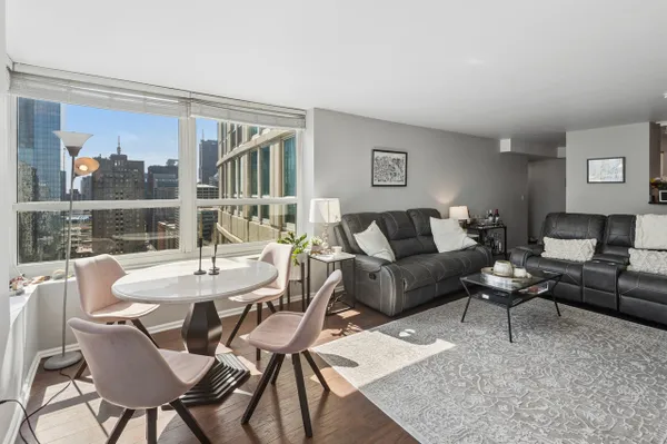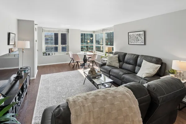 Elevated Above The City on the 46th Floor, This Rarely Available Expansive 2 Bed | 2 Bath is the Largest in the Building. Flooded with Natural Light From the Captivating Southeast-Facing Views Overlooking the Skyline, Lake & River. The Open-Concept Layout is Designed for Both Comfort and Entertaining, Featuring Newer Hard Wood Floors Throughout the Living Room and a Provides a Seamless Flow Between Living, Dining, and Kitchen Spaces. The Kitchen is Outfitted with Granite Countertops, Upgraded Cabinetry, and Stainless Steel Appliances, Offering Excellent Functionality. Both Bedrooms are Generously Sized with Abundant Closet Space and can Comfortably Accommodate a King-Sized Layout. The Primary Suite Features a Massive Walk-In Closet, In-Unit Washer & Dryer and En-Suite Bathroom. Residents Enjoy a Full Suite Of Amenities Including 24-Hour Door Staff, a Fitness Center, an Outdoor Pool + Sundeck, Tennis & Pickleball Courts, Dog Run, Fire Pits & Pergolas. The On-Site Management + 24/7 On-Site Building Engineer Create a True Full-Service Living Experience. Investor-Friendly with Low HOA's that Include Everything Except Electric, This Property Presents a Compelling Opportunity for Both a Primary Residence and Investors Seeking Strong Long-Term Value in a Prime River North Location. Situated Just Steps From the Chicago Riverwalk, Top-Tier Dining, Nightlife, Shopping, and Convenient Access to Public Transit and Expressways.