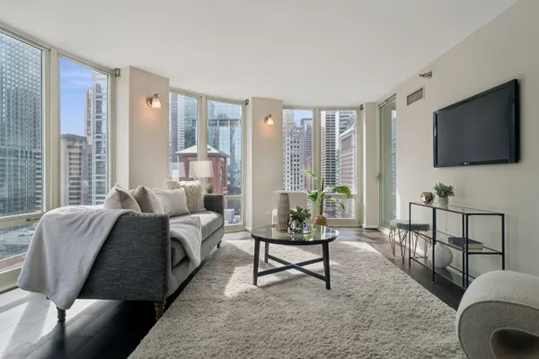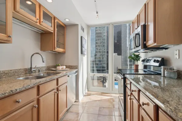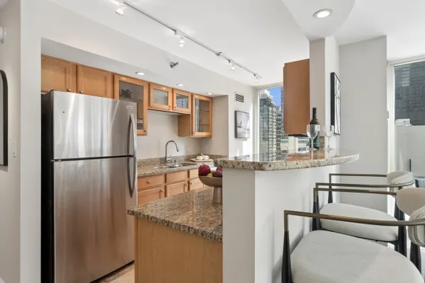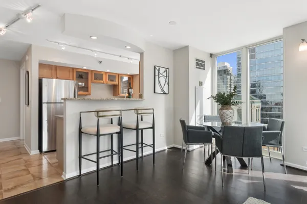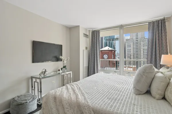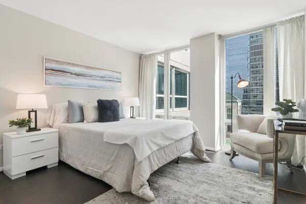 ***MULTIPLE OFFERS RECEIVED; HIGHEST AND BEST DUE BY TUESDAY, MARCH 31 AT 10AM***Dramatic floor to ceiling corner windows overlooking the cityscape and the river offer tremendous sunlight, open and flowing space & captivating views at every turn in this 2 bedroom unit at the coveted Sterling. Features include a formal foyer entry and a split bedroom floorplan for maximum privacy and convenience along with spacious room sizes throughout with rich wide plank flooring. Open kitchen offers warm honey cabinetry with granite tops & breakfast bar plus brand new fridge and leads perfectly into the dining and living spaces for ease in entertaining. The primary suite is generous in size (fits a King sized bed!) and has amazing views of the surrounding buildings while offering a professionally organized walk in closet, bonus linen closet & white bathroom with tons of counter space & tub/shower with soap niche & frameless enclosure. The secondary bedroom is equally large and features a wall of organized closets and has a bird's eye view of the building's incredible outdoor amenities! Imagine sitting on your private balcony (not all the units have balconies!), having morning coffee while gazing at the river and watching the activity on the riverwalk...or relax at the end of the day and take in the twinkle of the city lights from your private perch or simply from inside your incredible living room. You will be the envy of all of your friends with this amazing unit and unparalleled amenities that The Sterling offers including 24 hr door staff, an incredible outdoor pool & hotel inspired sundeck with cabanas, grills, lounge areas and fire pits, plus full size tennis and pickleball courts, 2 fitness rooms and dog run. What more could you possibly want?? Unbeatable location with endless restaurants, entertainment and public transportation right at your fingertips. Monthly rental parking available and attached to the building